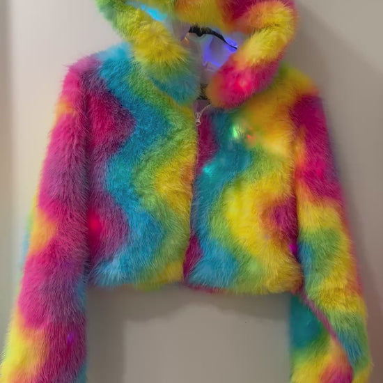 Rainbow Faux Fur LED Light Up Coat - Rave Ready